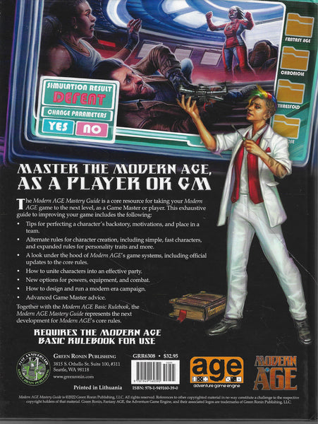 Perfect your Modern AGE game! Unlike traditional Game Master Guides, this expansion to the core Modern AGE rules provides advice for both players and Game Masters, ranging from instruction on storytelling and character portrayal to deep dives into the rules of Modern AGE. That includes new game systems, such as alternate character creation, and official rules updates to the Modern AGE Basic Rulebook. Take your game to the next level with the Modern AGE Mastery Guide!