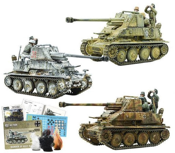 - Three 1/56th scale hard plastic Marder III tank destroyer
